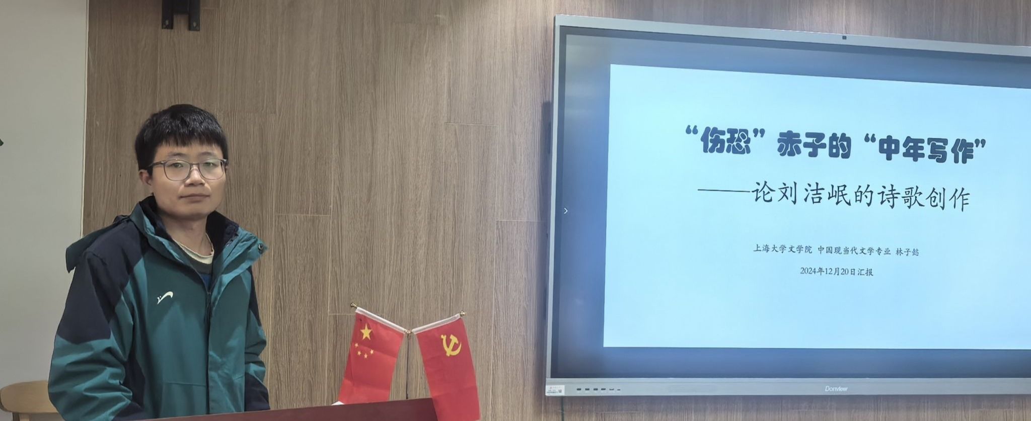 最后,2022级中国现当代文学专业博士研究生林子懿以《“伤恐”赤子的“中年写作”——论刘洁岷的诗歌创作》为例,详细解析了论文结构的构建和写作技巧。